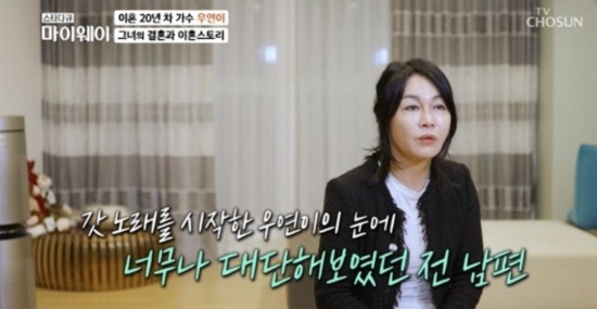 나이트클럽 가수로 활동하던 20대 초반, 우연이는 자신보다 무려 23살 연상이었던 악단장 강정락 씨를 만나 첫 번째 결혼을 하게 됩니다. 강정락 씨는 1980~90년대 김수희, 최진희 등 당대 최고 가수들의 편곡을 도맡았던 유명 트럼펫 연주자이자 작곡가였습니다.